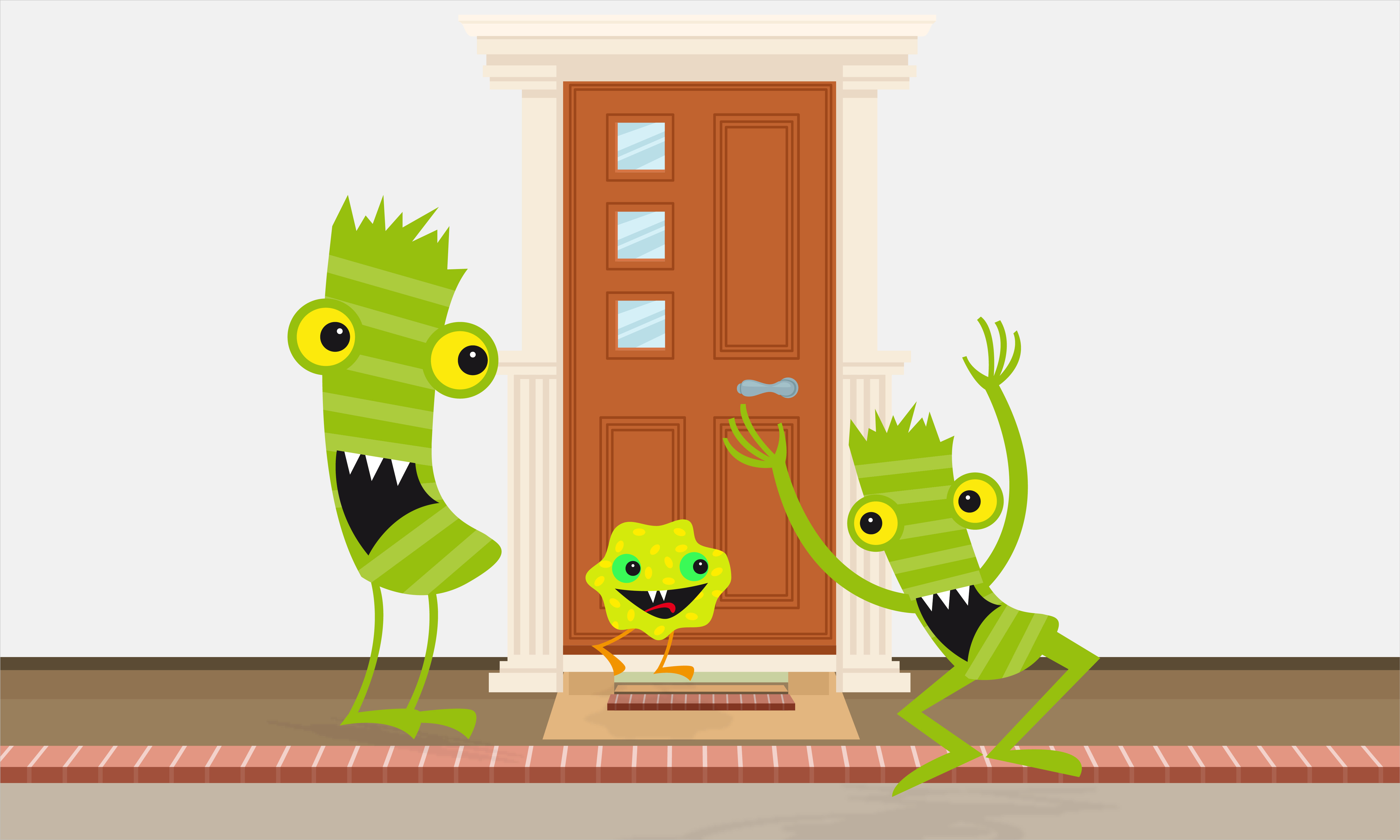 Illnesses such as the flu and the common cold are spread by germs passed from a sick person to a healthy person. Germs can spread through the air when a sick person coughs or sneezes or through a frequently touched surface, such as a doorknob. That’s why it’s important to wash your hands often.